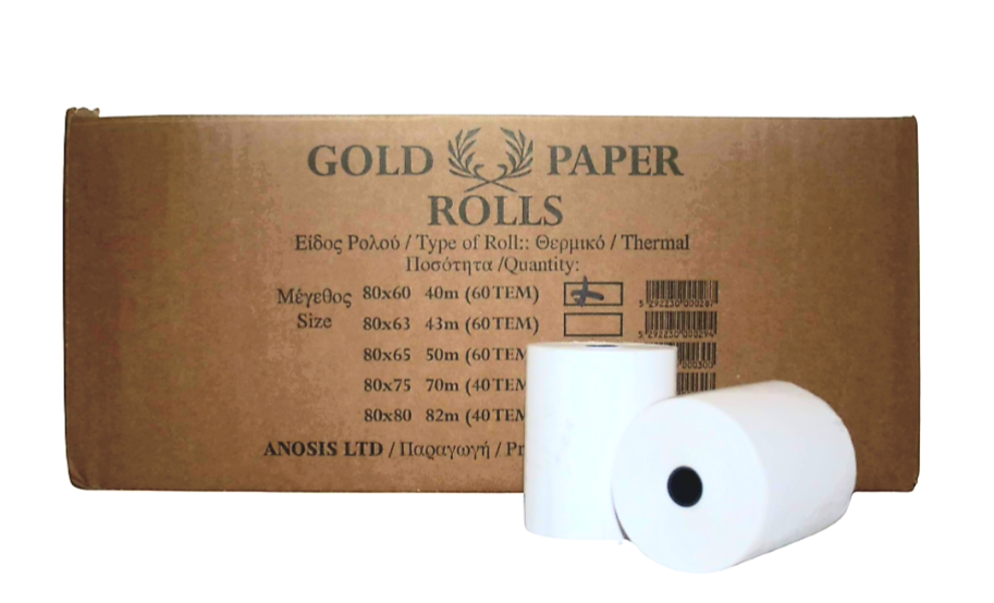 Gold Thermal Rolls-Η- 79x60m 38M 45gr 80 Pieces in Box.