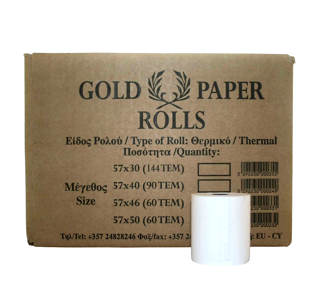Gold Cash register visa roll-Η- 57x40mm 14m 45 gr 90 pieces per Box.